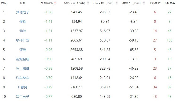 A股市集板块涨跌幅名次